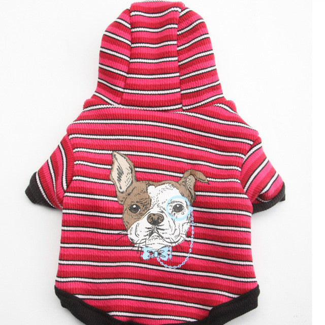 It is made of a soft cotton material that keeps your little pet comfortable and warm during the cold winter. A classical and fashionable hooded four legged sweatshirt with wing design printed on the back.